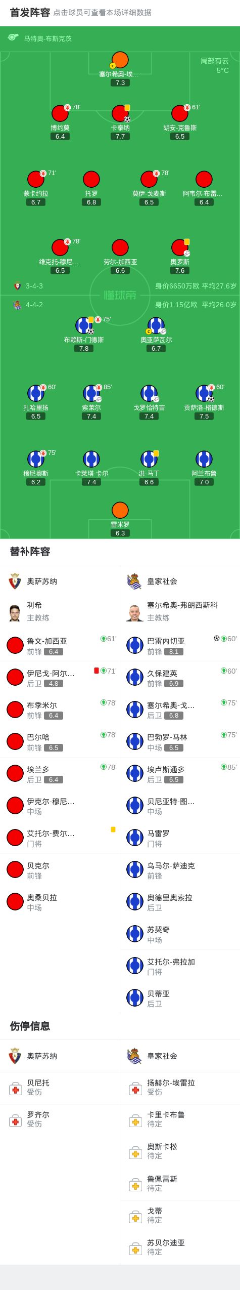 皇家社会3-1逆转奥萨苏纳,巴雷内切亚、贡萨洛-格德斯破门