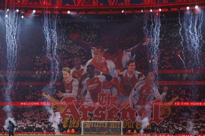 阿森纳本场比赛在主场展示了巨大的横幅。