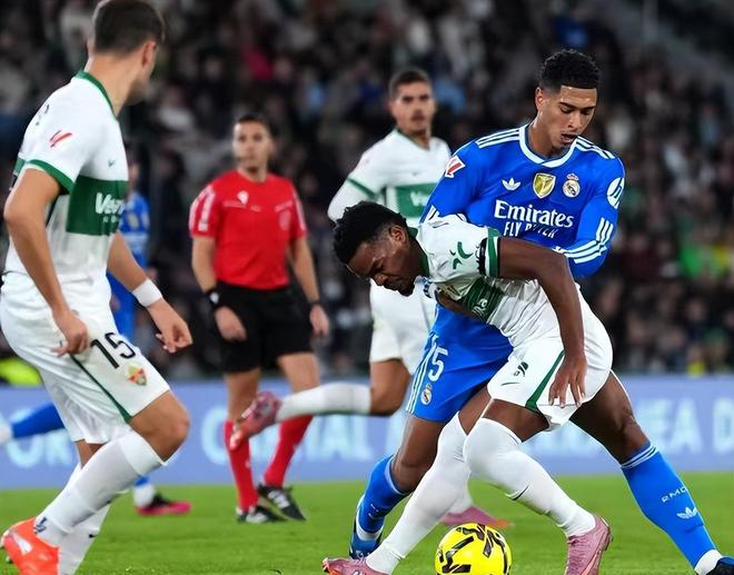 皇马近期的状态有些波动,对阵埃尔切的比赛之前,双线均不胜,欧冠0-1利物浦,西甲第12轮0-0巴列卡诺。对阵埃尔切又遭遇了阻击,上半场两队把握机会的能力欠佳,均无建树,互交白卷。第53分钟,埃尔切在皇马的禁区前3人踢出了默契的配合,巴莱拉脚后跟助攻,费瓦斯打破僵局。比分落后的皇马只能通过换人调整,维尼修斯、巴尔韦德等人登场,第80分钟皇马通过角球战术由赫伊森完成破门,双方1-1战平。
