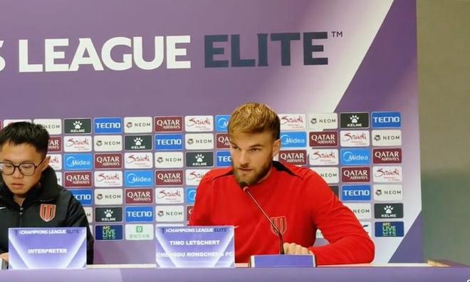 11月24日,成都蓉城对阵广岛三箭的赛前新闻发布会,球员提莫-莱切特出席。