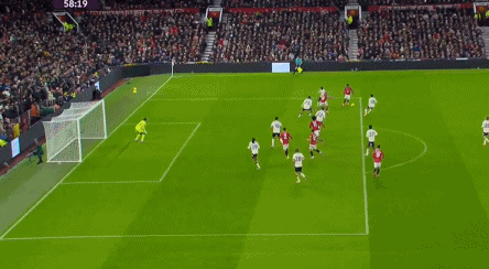 卡塞米罗禁区外射门,击中西汉姆联球员产生折射,达洛特禁区内将球卸下,随后抽射破门,1-0!