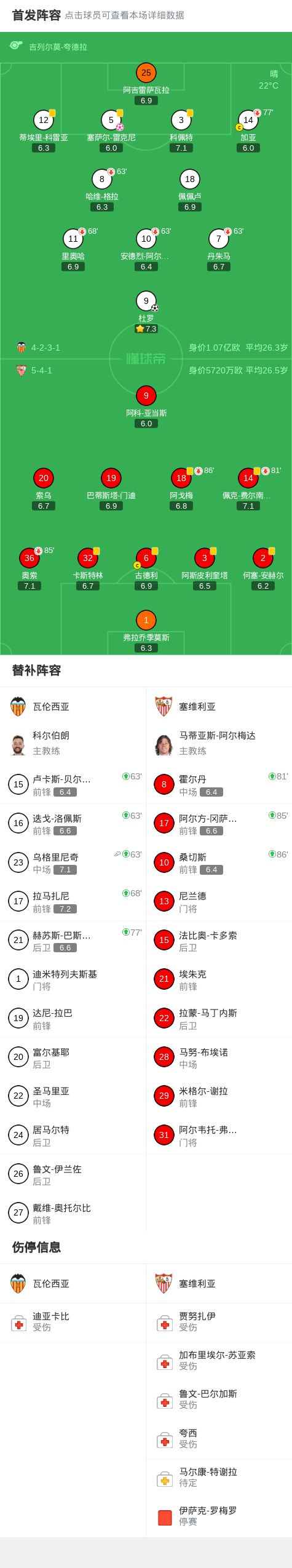 瓦伦西亚1-1塞维利亚,杜罗建功